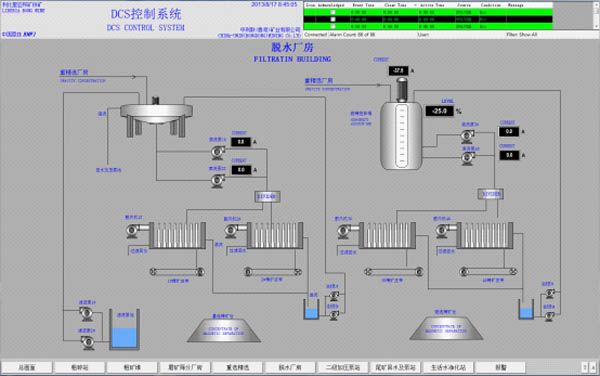 ENFI undertook the design of the whole-plant automation control system, integrated supply and commissioning of equipment including field instrument, particle size analyzer, fluorescence analyzer, on-line tailings monitoring system and industrial television monitoring system. ENFI overcame the difficulties such as long process, complex engineering geology, large quantity of equipment, numerous and disorderly piping, and kept improving the control scheme during the supply of materials, system programming and configuration as well as commissioning of the project. The project was successfully put into production in September 2014 and highly recognized by the owner.