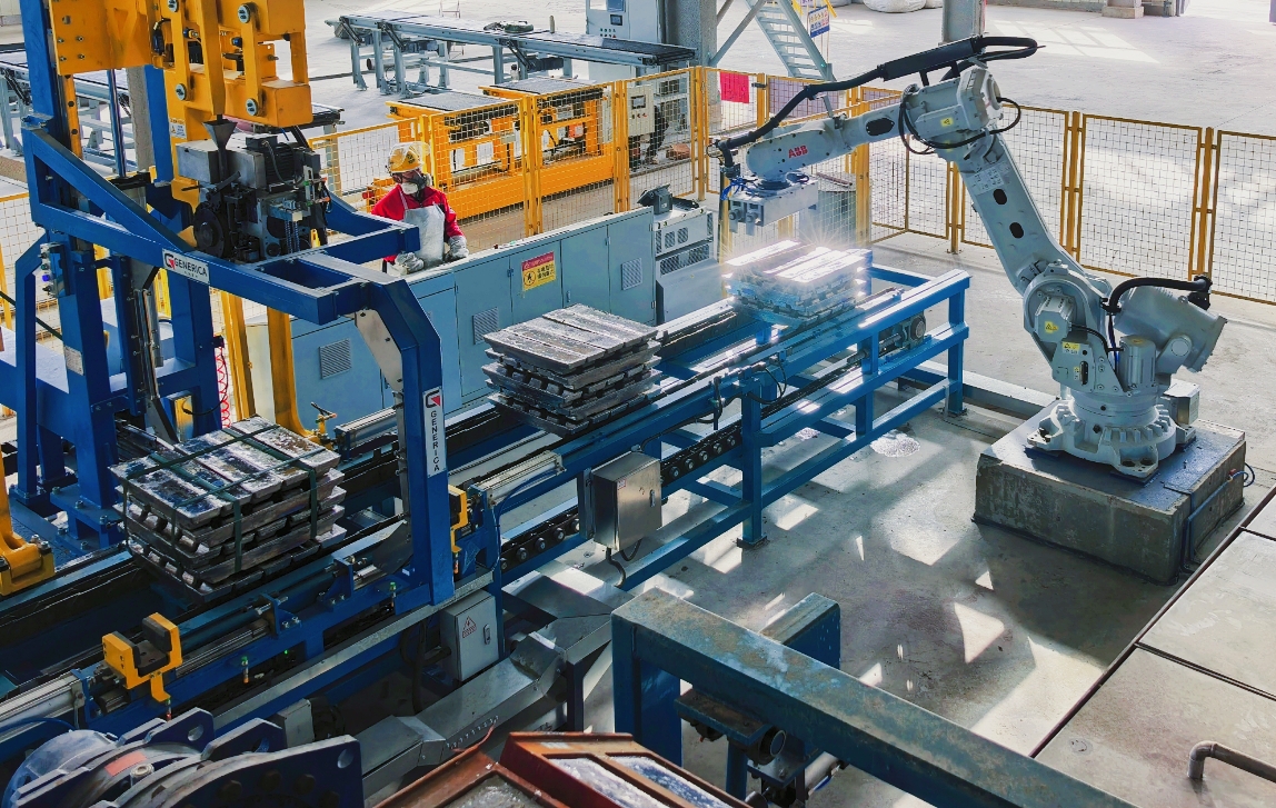 取料機(jī)器人打包鉛錠
