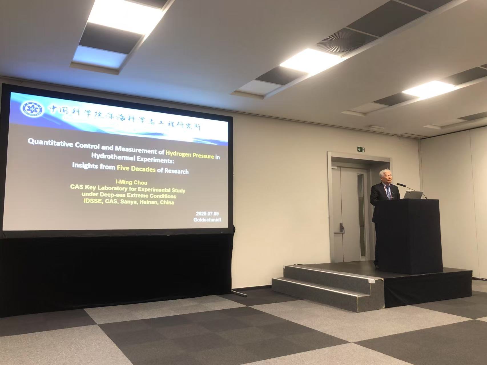 近日,深海極端環境模擬研究實驗室周義明研究員等一行5人參加了2025年戈爾德施密特會議(Goldschmidt Conference),4人作了口頭報告,1人作了墻報展示。周義明研究員在會上介紹了水熱實驗中氫氣壓力的定量控制與測量技術。