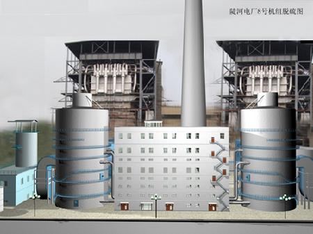 中國恩菲設(shè)計(jì)的第一個電廠煙氣脫硫工程。采用“石灰-石膏”濕法煙氣脫硫工藝,設(shè)計(jì)處理氣量為2×83萬Nm3/h, 煙氣中SO2含量約為2800mg/Nm3,一爐一塔配置,吸收塔為中國自主知識產(chǎn)權(quán)的“高效旋流板塔”。2004年9月開始建設(shè),2005年12月順利投產(chǎn),脫硫率高于95%,是中國恩菲第一套完全采用國產(chǎn)化煙氣脫硫技術(shù)的工程。